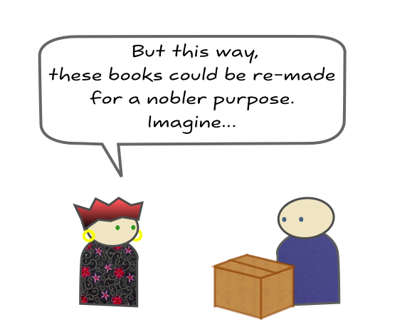 1. I would give the books back as recycling wastes energy. No point if they can be reused.