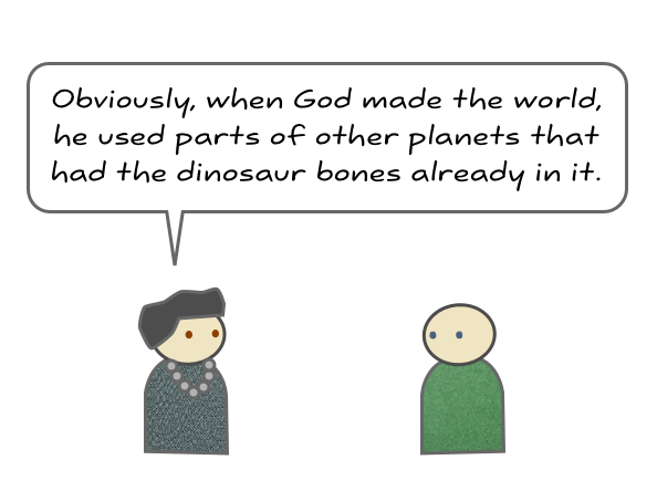 What she’s describing is theistic evolution, which is sort of like splitting the difference between science and religion. It’s now the philosophy of choice for believers who can no longer ignore the torrents of evidence for evolution, but who don’t like its inevitably atheistic implications. So they acknowledge that evolution is true, but then they say “But surely a god must have been involved somewhere. Maybe he invented evolution! Yeah, that’s it.”